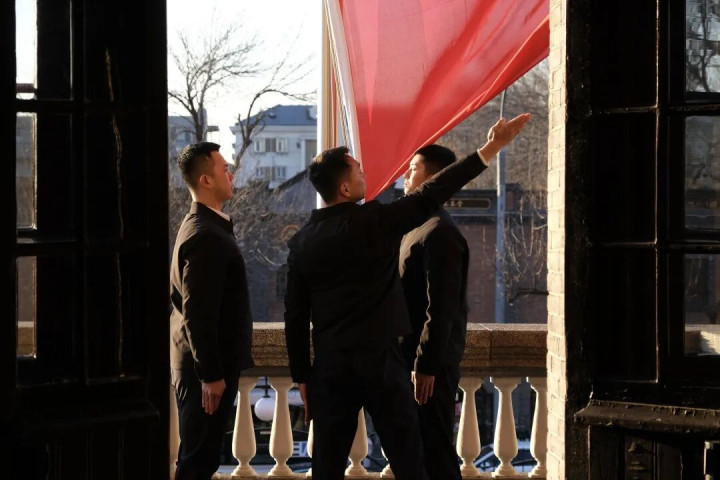 迎着2026年第一缕曙光,北大红楼在晨曦映照下庄重肃穆。8时30分,升国旗仪式正式开始。在嘹亮的国歌声中顺升网,全体人员庄严肃立、注目行礼,五星红旗在北大红楼上空迎风飘扬。